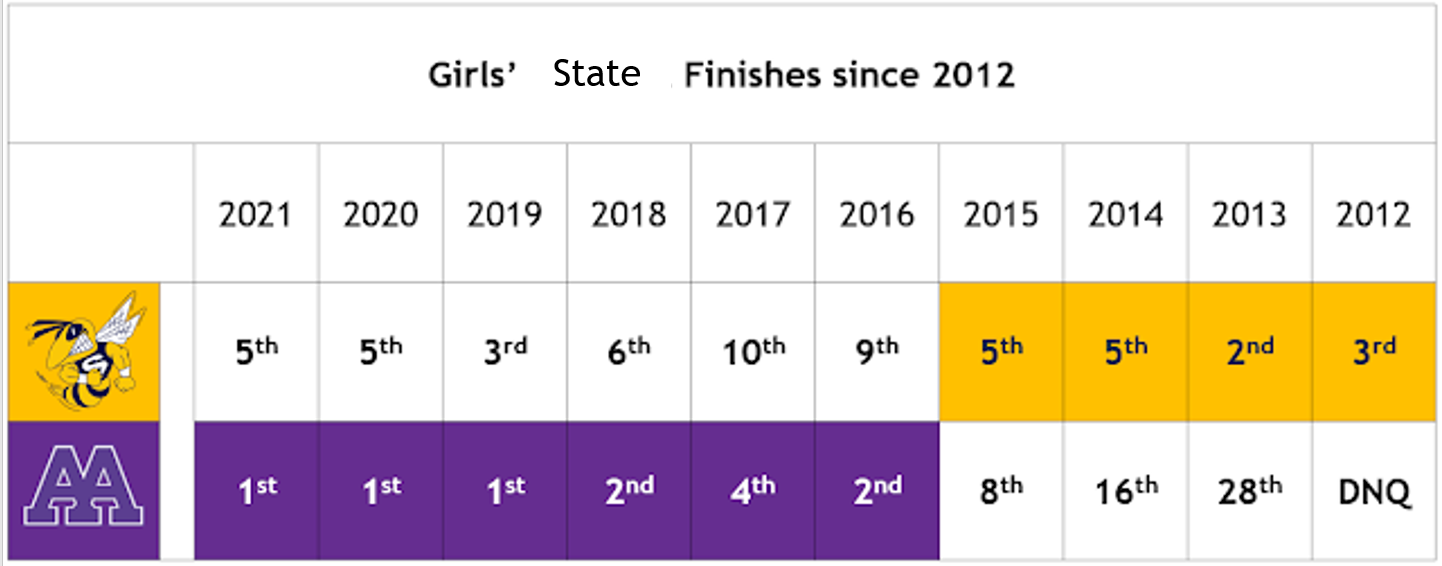 After a series of close calls in recent years, the Lowell boys finally ended their 16-season MIS drought in 2021. The girls, with an even longer drought of 18 (now 19) seasons, fell 41 points short, but junior Annika Sandman brought home an individual regional title and an all-state finish. Annika's track season was just as good, as she ran 4:56 at states to place 10th from the slow heat. With Lowell bringing back its entire top 5 and moving to the likely weaker (albeit messy) Region 3, now is the time for the Red Arrows to make it back to states.